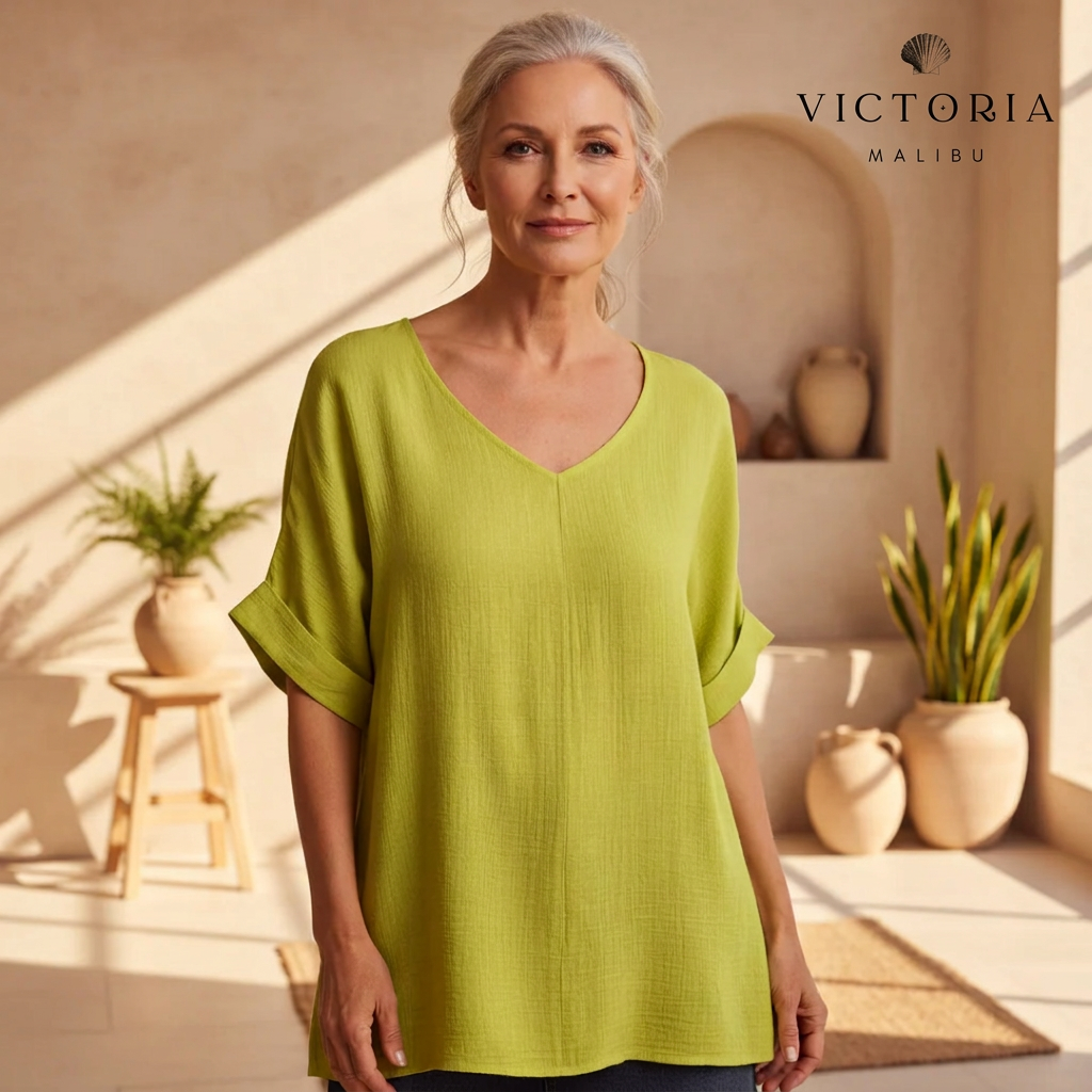 Introducing the Daniela - Comfy Casual V-Neck Top, a versatile and stylish piece perfect for relaxed days and easy elegance. With its vibrant colour and relaxed fit, this top is sure to become a staple in your wardrobe.